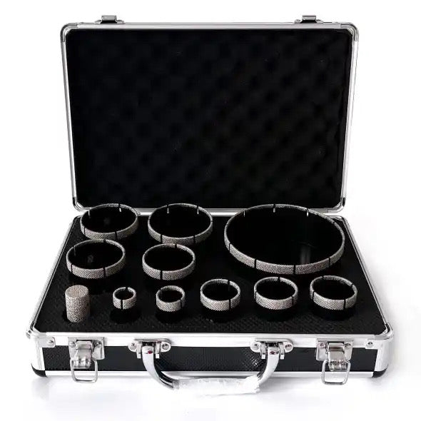 - Matrixdiamantbohrkronen (20mm,25mm,35mm,38mm,40mm,50mm,55mm,60mm,68mm,120mm,25mm Fräskopf zum verbreitern der Löcher )